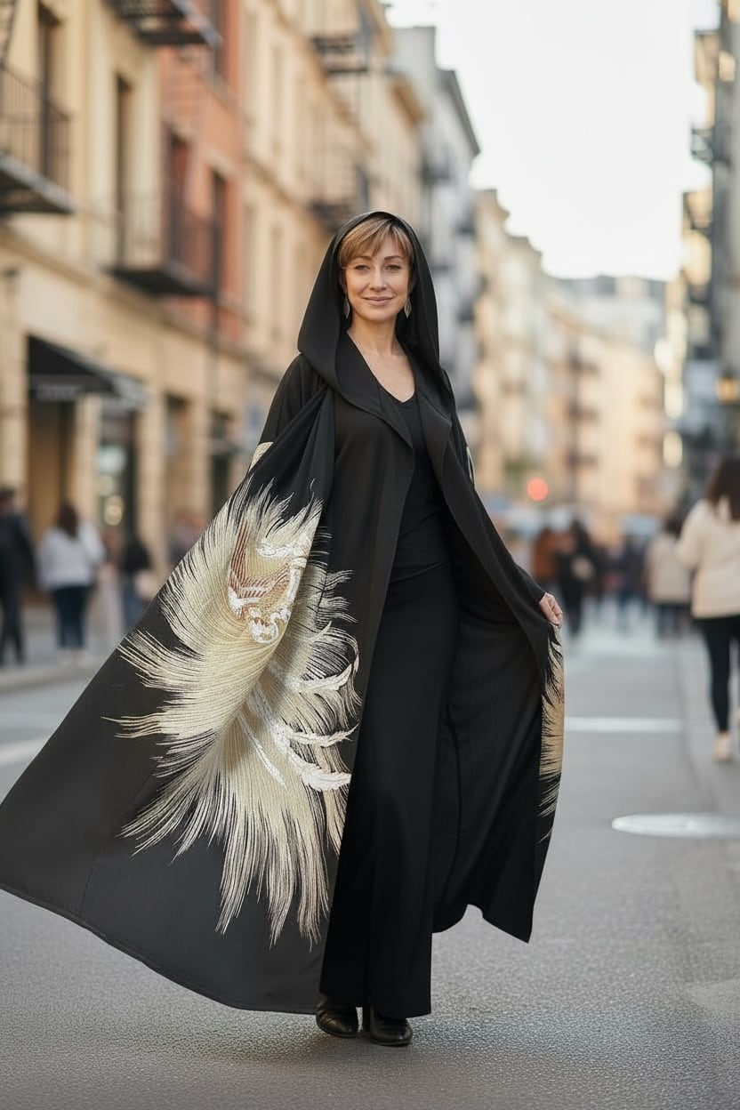 美しい黒留袖を使用した黒留袖カスタムフード付きコートが新たに登場です!特別なイベントはもちろん、日常のカジュアルスタイルにも適したアイテムで、和の美しさを取り入れつつ、ユニークなスタイルを楽しむことができます。フード付きのデザインで、さらなる魅力を引き出しています!