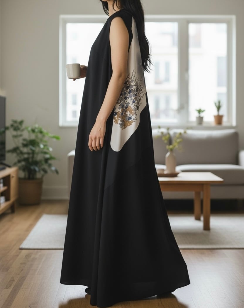 黒留袖アシンメトリーロングドレスは、軽やかな素材感と優れたフィット感が特長です。特別な日の装いだけでなく、デイリーなスタイルにも幅広く対応できる便利なアイテムです。季節を問わず、様々なシーンで活用していただけます。