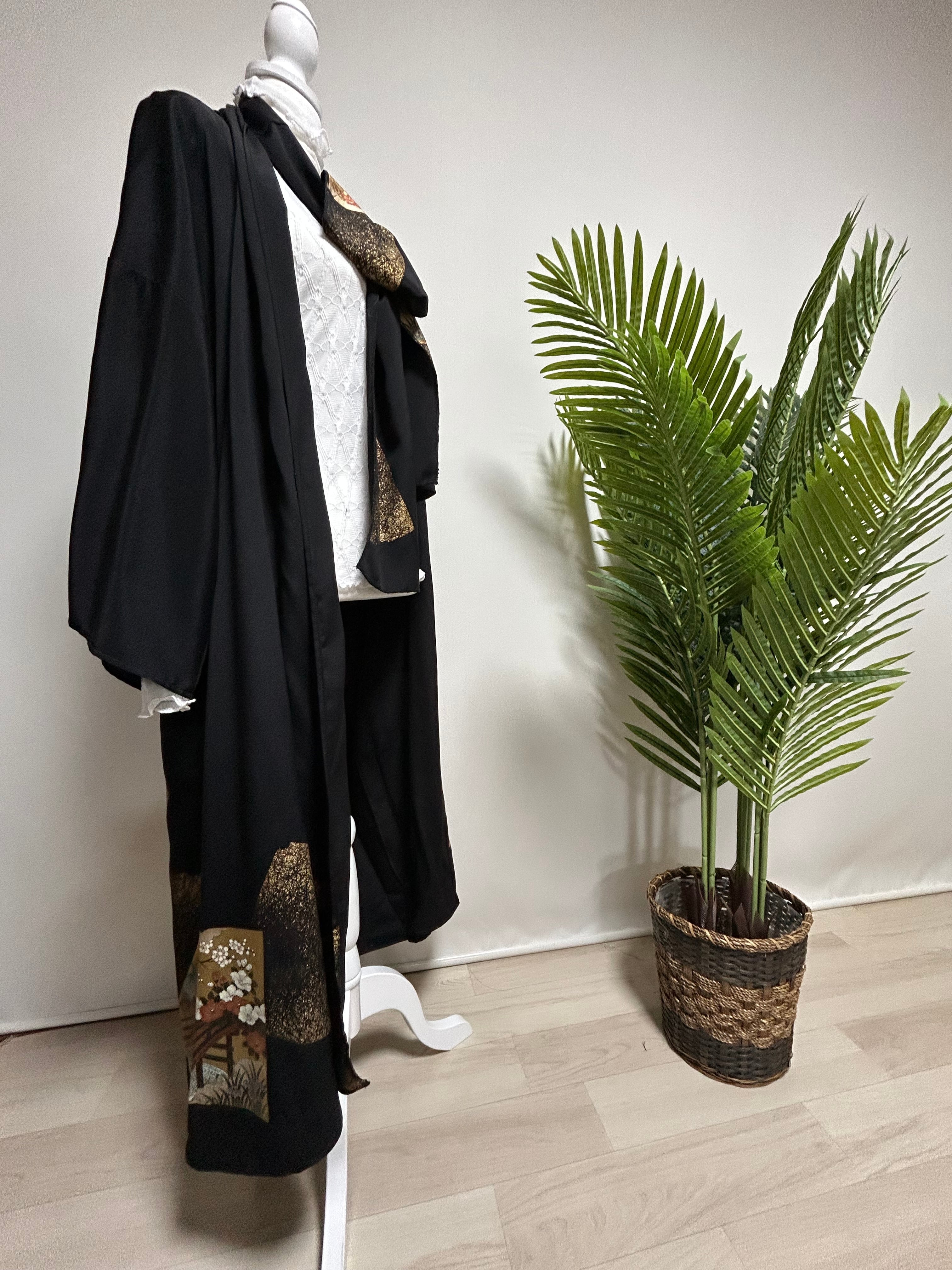 黒留袖をリメイクしたロングコートが登場しました。伝統的な黒留袖の美しさを現代的にアレンジしたこのアイテムは、シンプルでありながら洗練されたスタイルを提案します。軽やかで着心地が良いデザインは、特別な日のお出かけはもちろん、普段使いにもぴったりです。