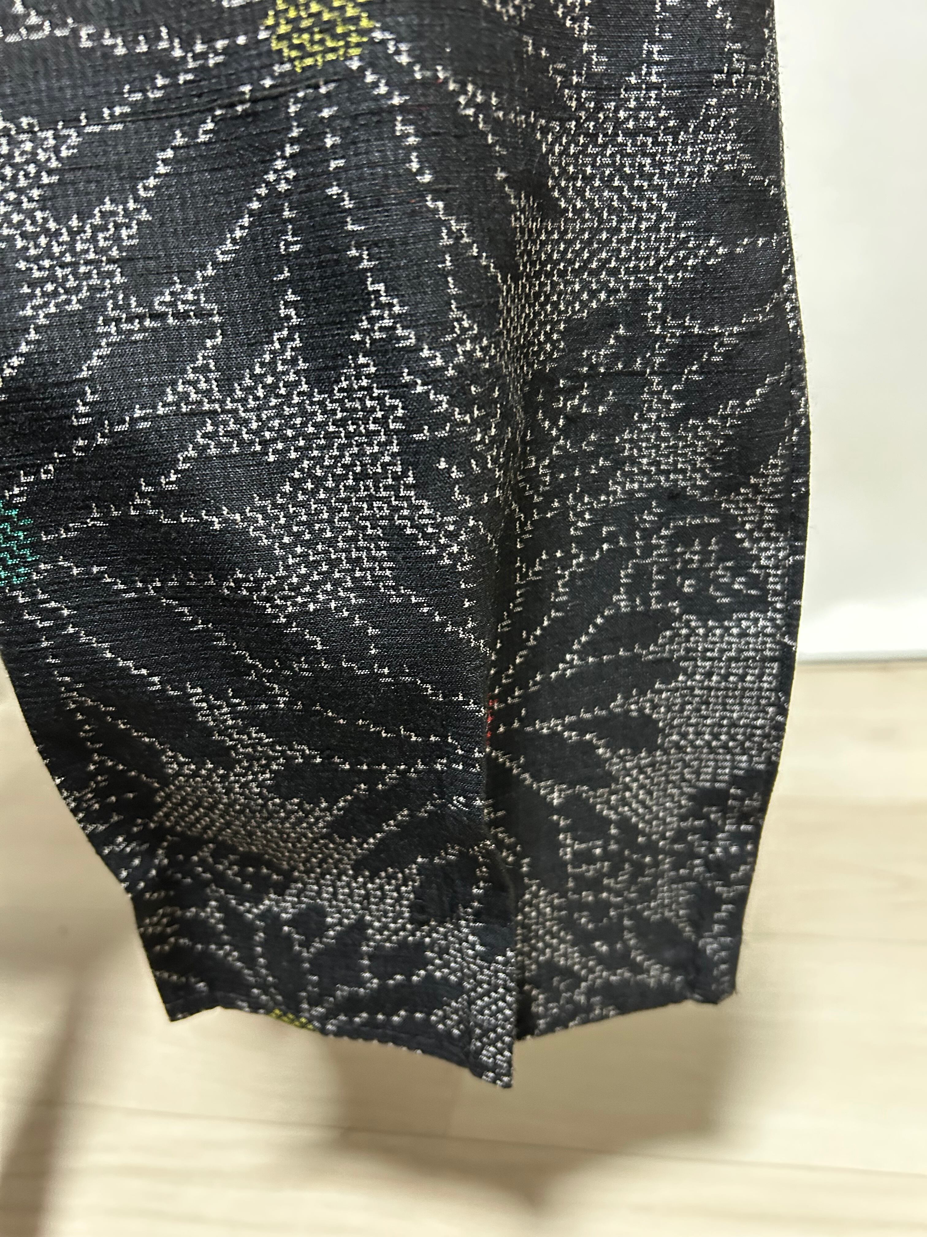 菊柄の紬 アシンメトリーベスト、スカート、パンツ3点セットアップ