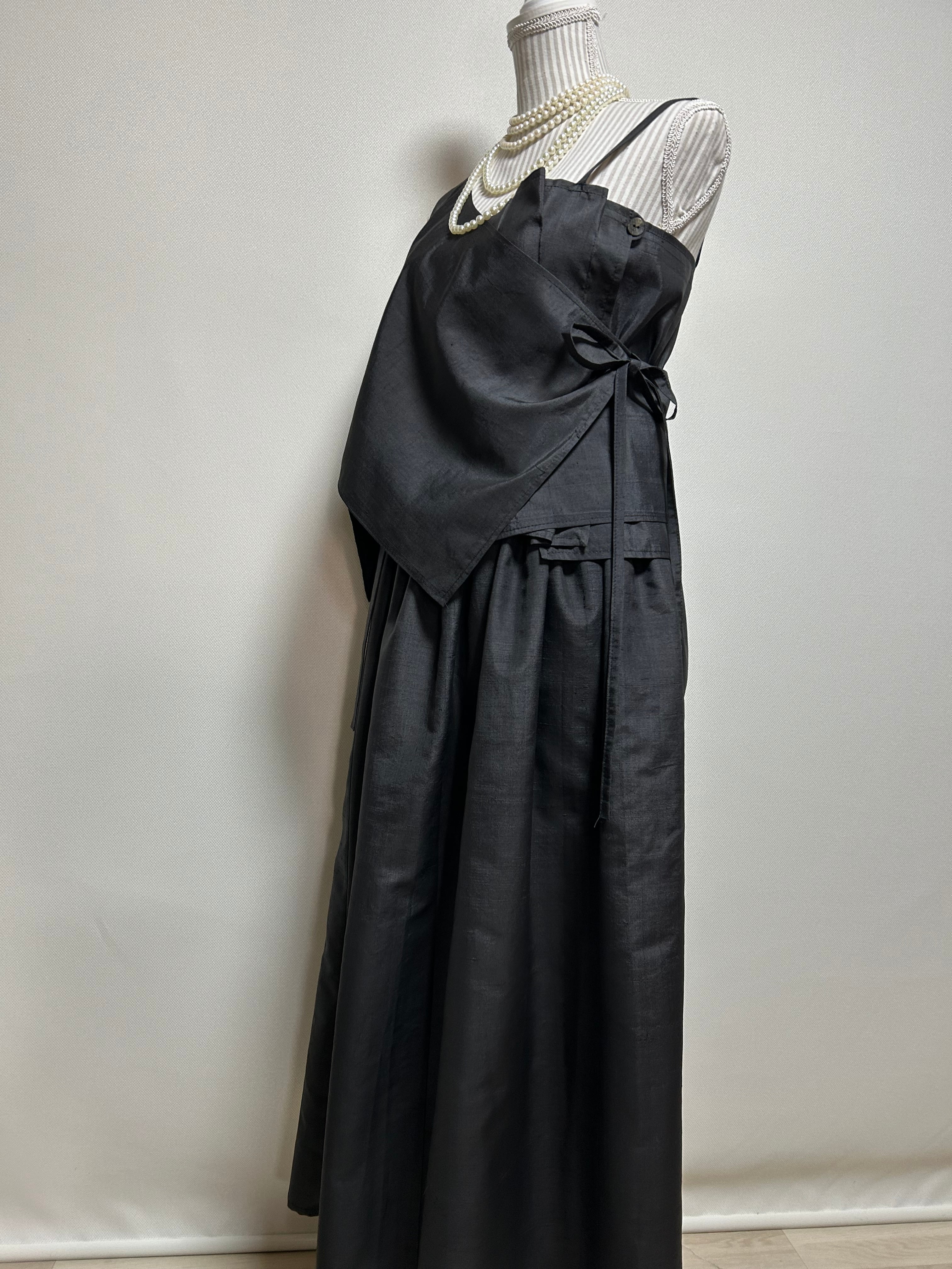 ## 商品名:黒紬 アシンメトリーベスト2点&スカートセットアップ